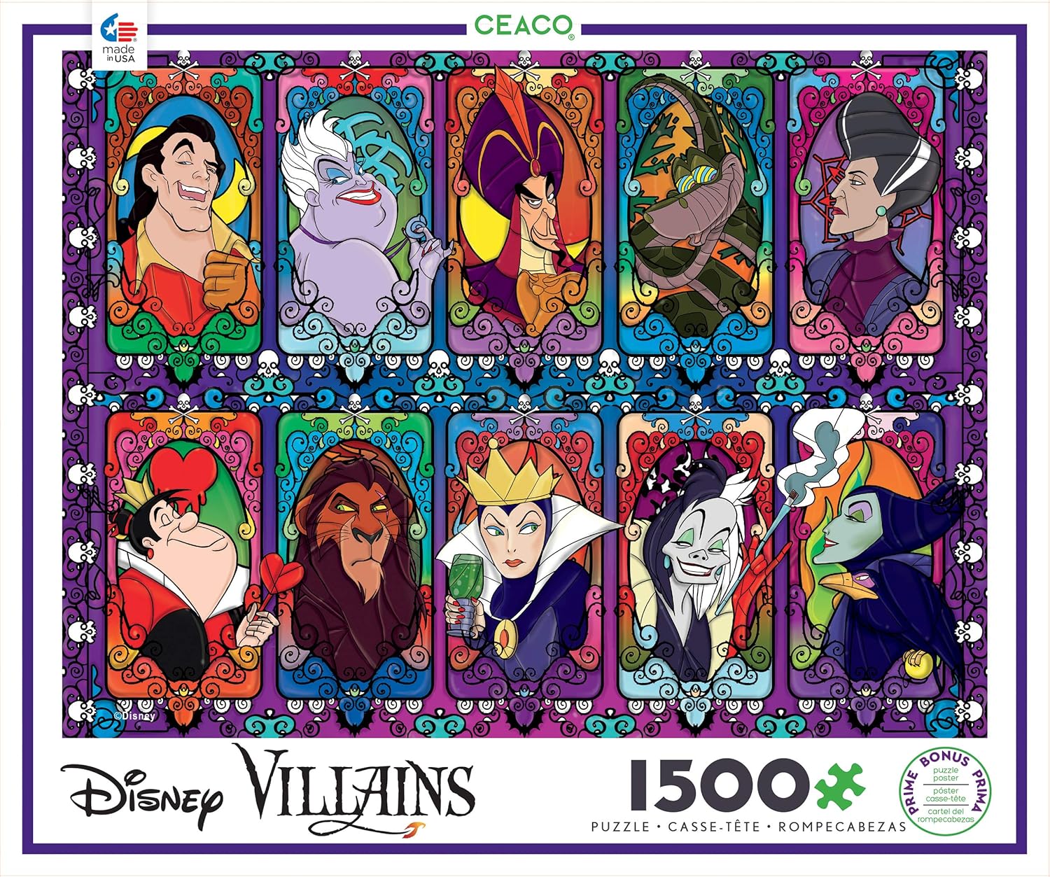 This 550 piece puzzle is a bold and colorful collage of the most famous disney villians featuring maleficent, ursula and the evil queen in snow white and the seven dwarfs, framed.550pc disney villians framed This fun jigsaw puzzle features 500 individual pieces that fit together to reveal a scene of ursula, the wicked sea villain from the classic disney movie, the little mermaid. Great for family nights, gifts, holiday gatherings, disney collectors and more. Disney villains maleficent 550 piece jigsaw puzzle $32.99. Disney disney villains jigsaw puzzles.